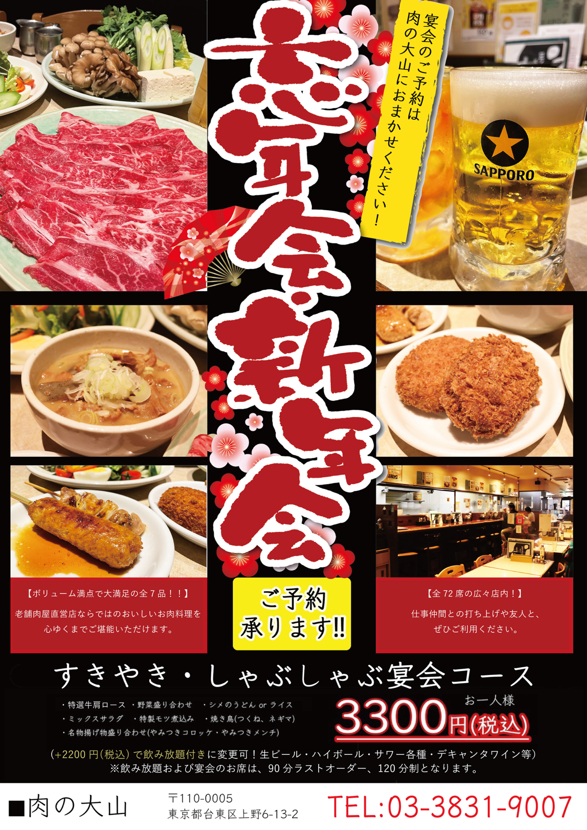 ※宴会及び飲み放題は120分制、90分ラストオーダーとなります。