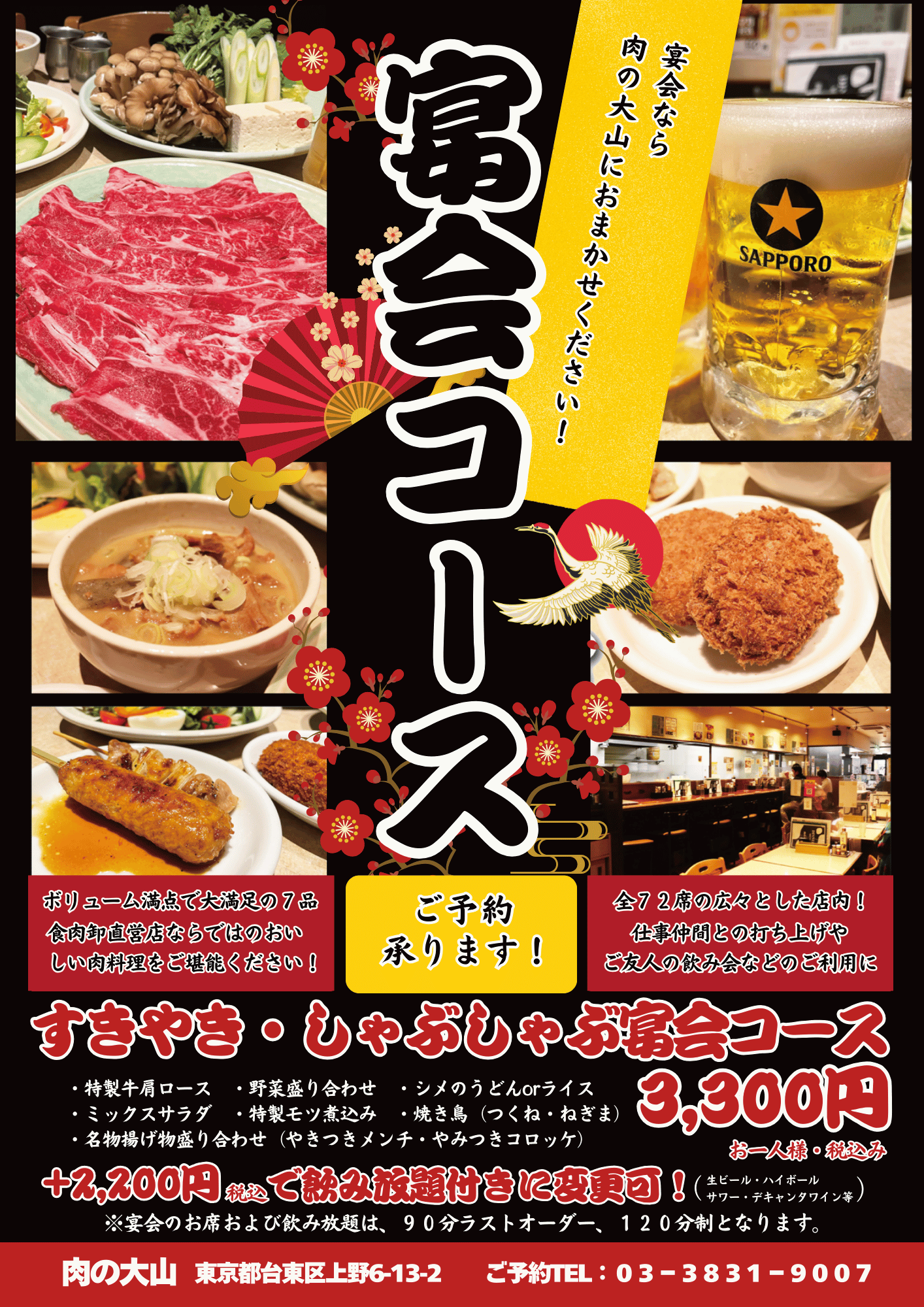 ご予約は上野店へ ℡:03-3831-9007